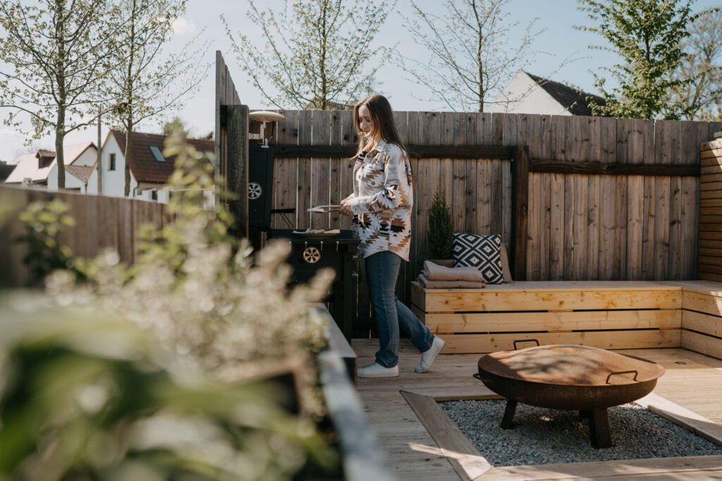- Exterior with terrace, grill and garden
